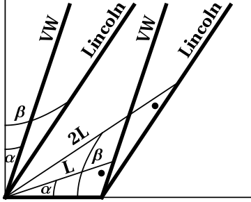 Figure 7.3: The spacetime diagram for the Lincoln and the VW.