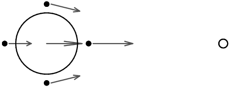 This effect causes tides! To see this, imagine that the Earth is falling towards the Moon, as shown in Figure 13.4. The Earth itself can be regarded as a rigid body, falling toward the moon with the velocity given by the arrow at its center. But the water on the surface of the Earth falls toward the moon depending on its location, with velocities given by the four arrows shown. The relative motion of the water and the Earth is given by comparing the arrows: Both the nearest and furthest points from the Moon move away from the center, causing high tides, whereas the points on either side move toward the center, causing low tides. This explains why there are two, not one, high (and low) tides every day! A similar effect, but roughly half as strong, is caused by the Sun.